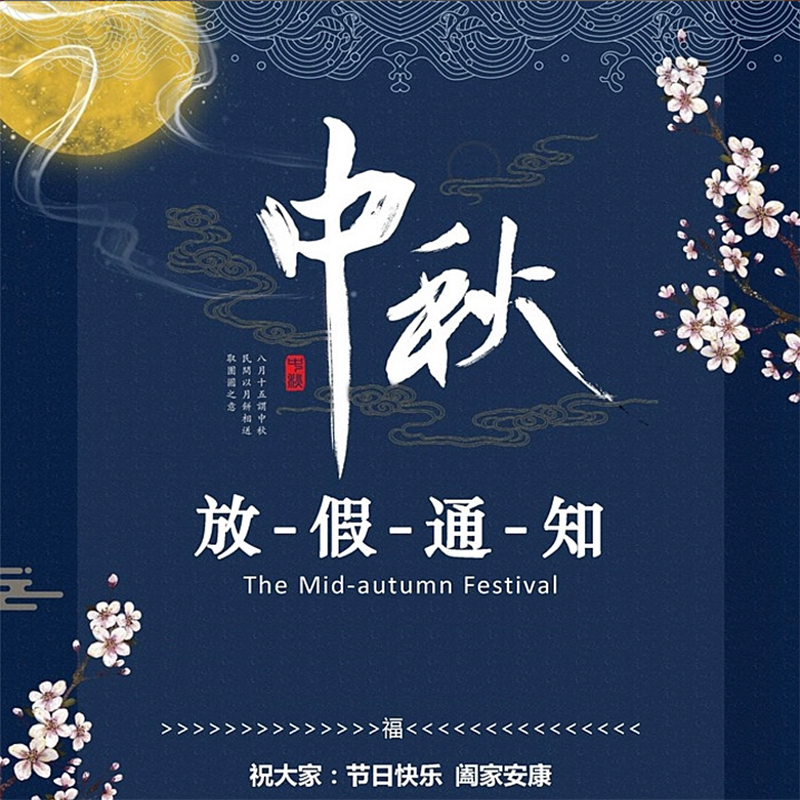 日期:2019-09-12中秋節(jié)放假通知: 根據(jù)國(guó)家中秋節(jié)假期安排,本公司中秋節(jié)放假時(shí)間:9月13日(中秋節(jié))至9月15日(周日),共3天,9月16日(周一)正常上班。 提前祝大家中秋節(jié)快樂(lè)! 放假期間我公司安排技術(shù)人員值班,如需幫助,請(qǐng)撥打電話:13712287166,聯(lián)系工程師任先生,給您帶來(lái)不便深表歉意.望諒解! -