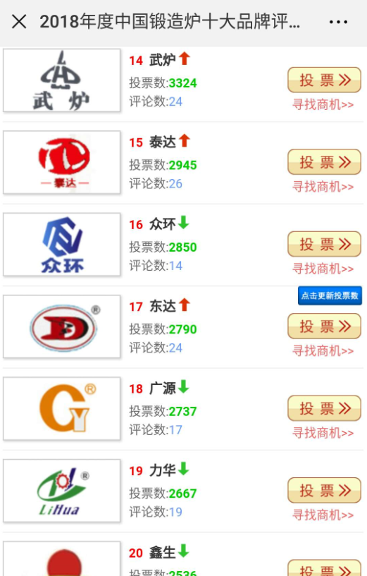 日期:2018-07-29熱烈祝賀東莞市眾環(huán)機械有限公司榮登中國工業(yè)鍛造爐全國16強,感謝社會各界朋友的大力支持 感謝中國鍛造協(xié)會 感謝眾環(huán)機械的每一位工作人員 -